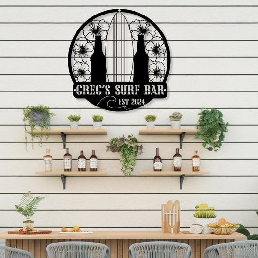 Hibiscus Surfboard Personalized Metal Bar Sign