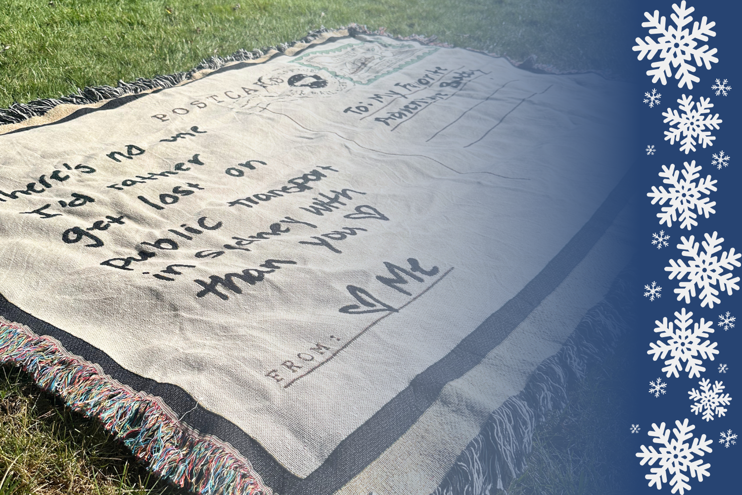 Every blanket features your handwritten message in a postcard design, making it one-of-a-kind. Perfect for: