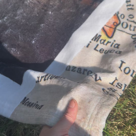 Wanderlusting for your next adventure together? Snuggle up and celebrate your favorite travel partner with this woven keepsake blanket. Personalize with your message either in YOUR handwriting or have us add it in a handwriting font for you and upload two travel photos. You can also customize the postage stamp by letting us know the travel destination (ie Sydney, Australia or Paris, France) or special activity (ie surfing or cruise ship). Once ordered, we'll send you a proof to approve within 48 hours.