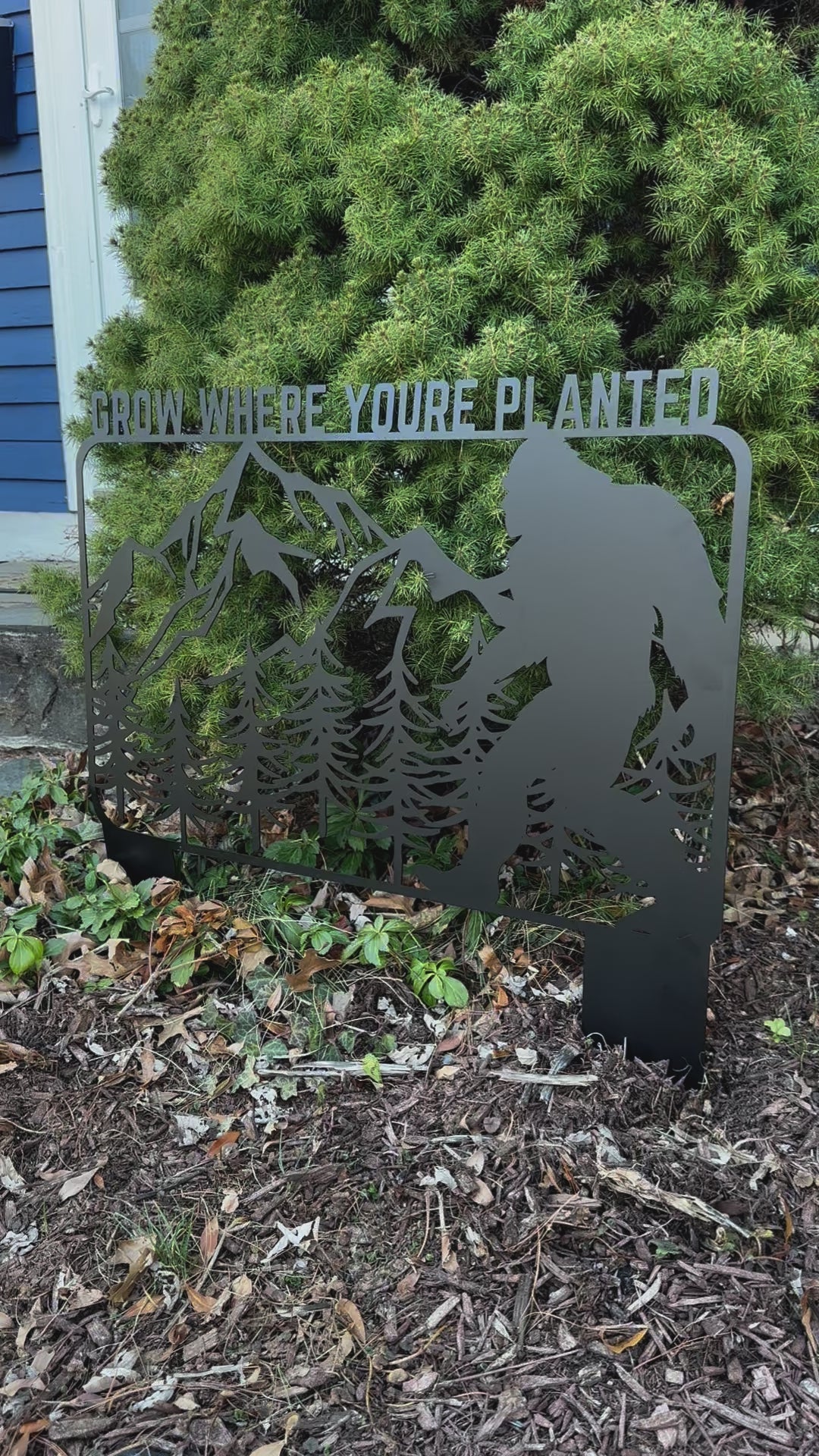 Sasquatch Garden Trellis Metal Sign with Stakes